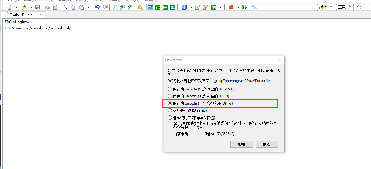 重新保存下Dockerfile文件--然后重新从本机拷贝下--