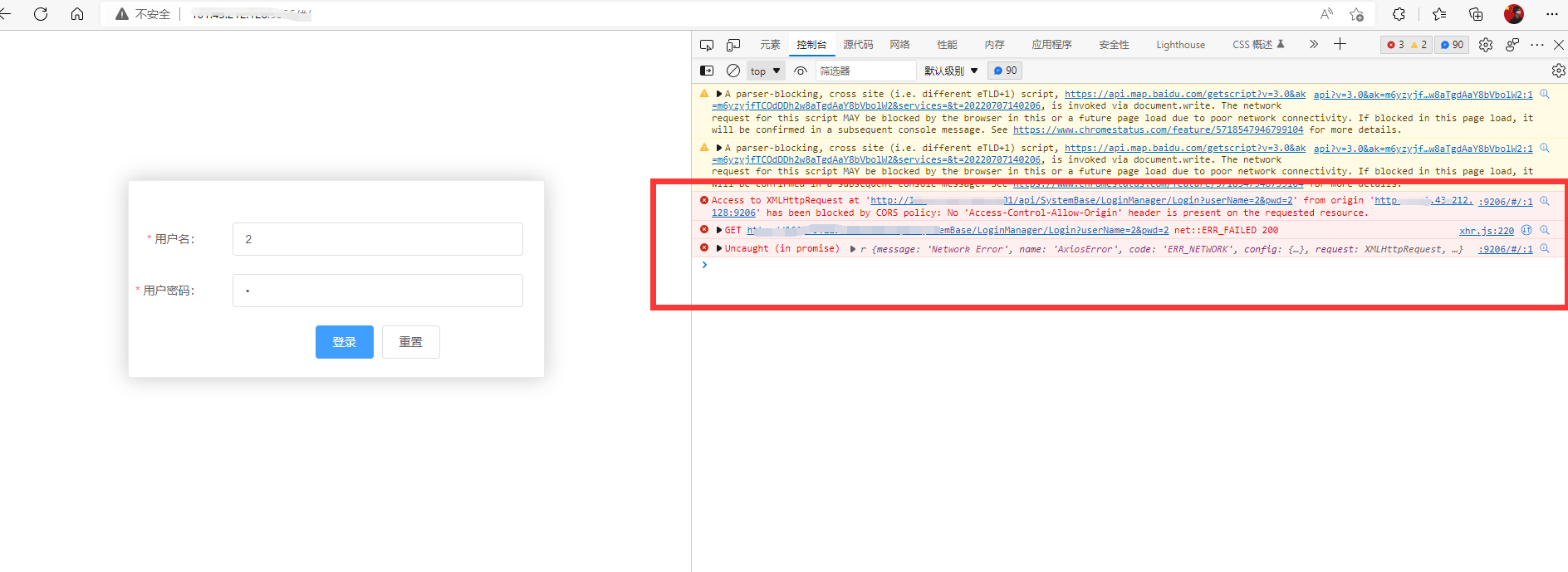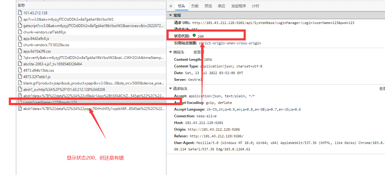 登录显示运行跨域错误:--但是网络那里200状态码,并且把那个路径粘贴去访问也会返回一串文本提示登录成功