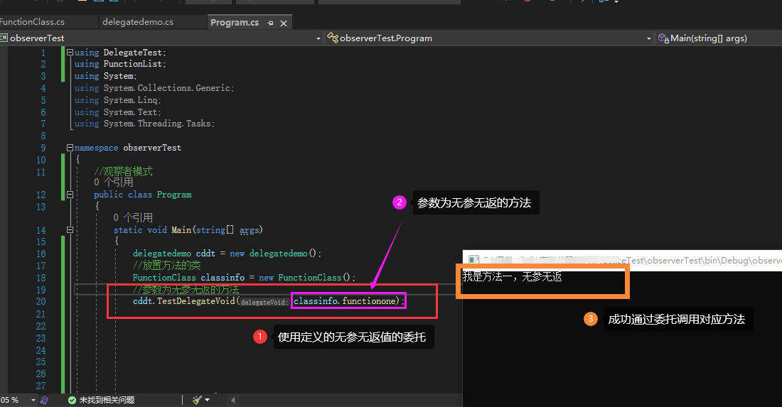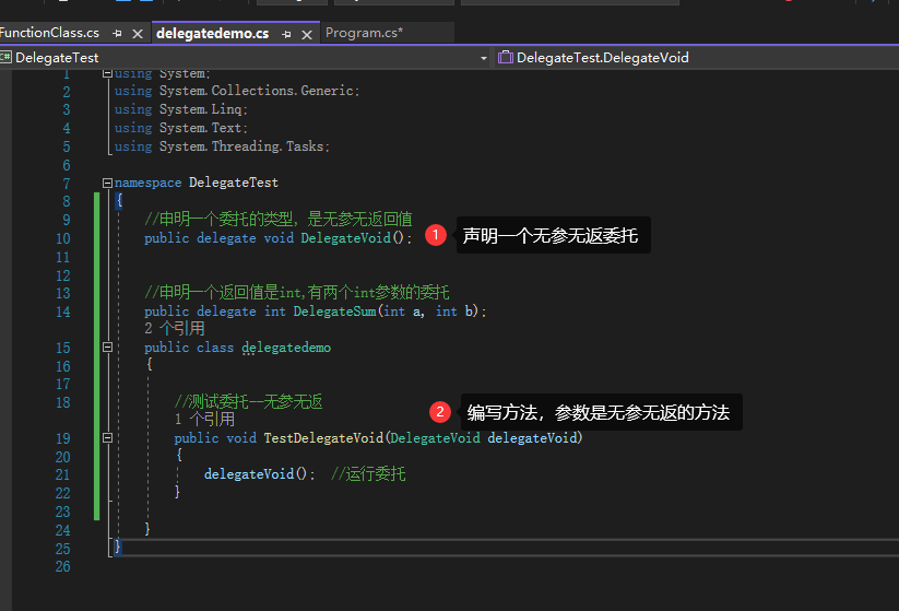 ①无参无返委托