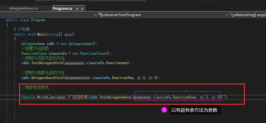 ②有参有返委托