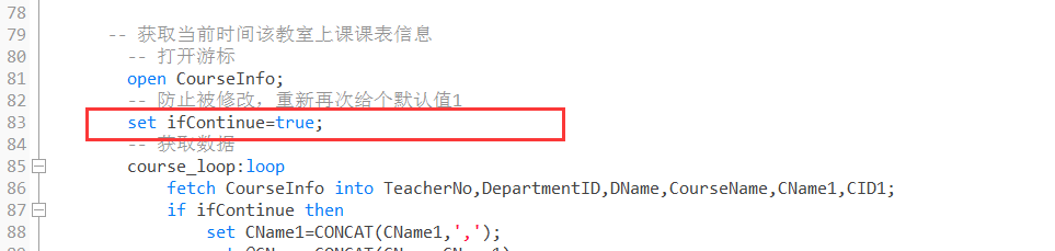 declare cifcontinue boolean default true; -- 是否继续循环标志