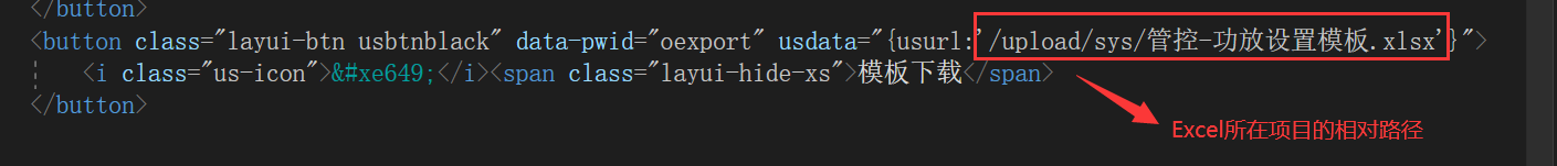 1、方式一:开发人员将固定的Excel放入项目指定中,用户点击下载模板,通过项目的相对路径中获取并下载Excel模板