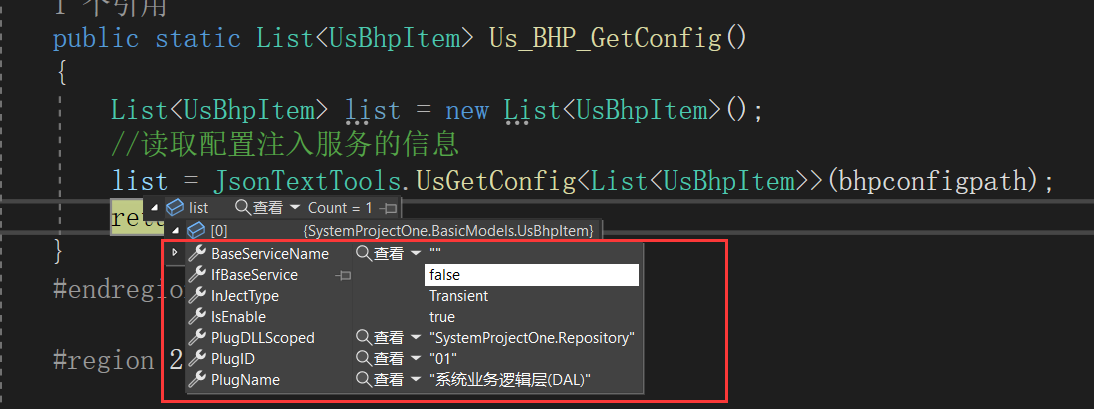 //调用方法读取json文件内容 List<UsBhpItem> bhpItems = UsServiceAdd.Us_BHP_GetConfig();
