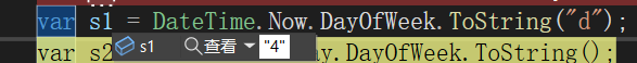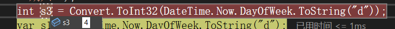 //int类型 Convert.ToInt32(DateTime.Now.DayOfWeek.ToString("d")); //string类型 DateTime.Now.DayOfWeek.ToString("d"); //注意 :当星期日时返回是0不是7 需要判断 nowdate.DayOfWeek.ToString("d")=="0"?"7": nowdate.DayOfWeek.ToString("d");