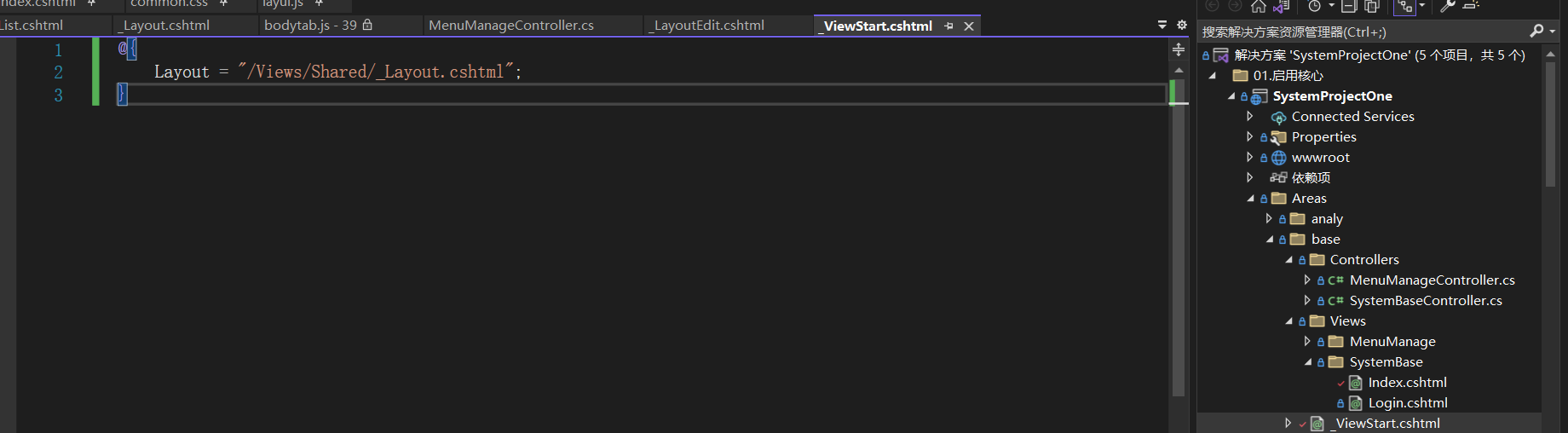 使用主程序下的_Layout.cshtml视图页进行布局(可以设置每个页面的共有样式)