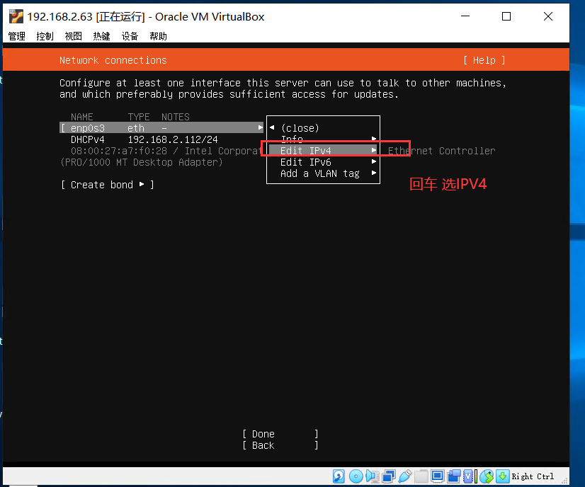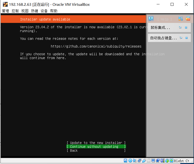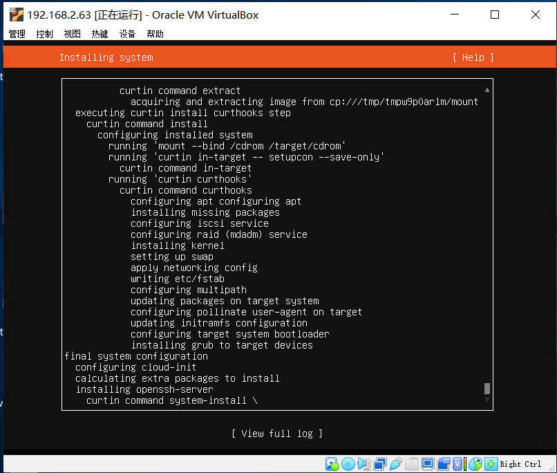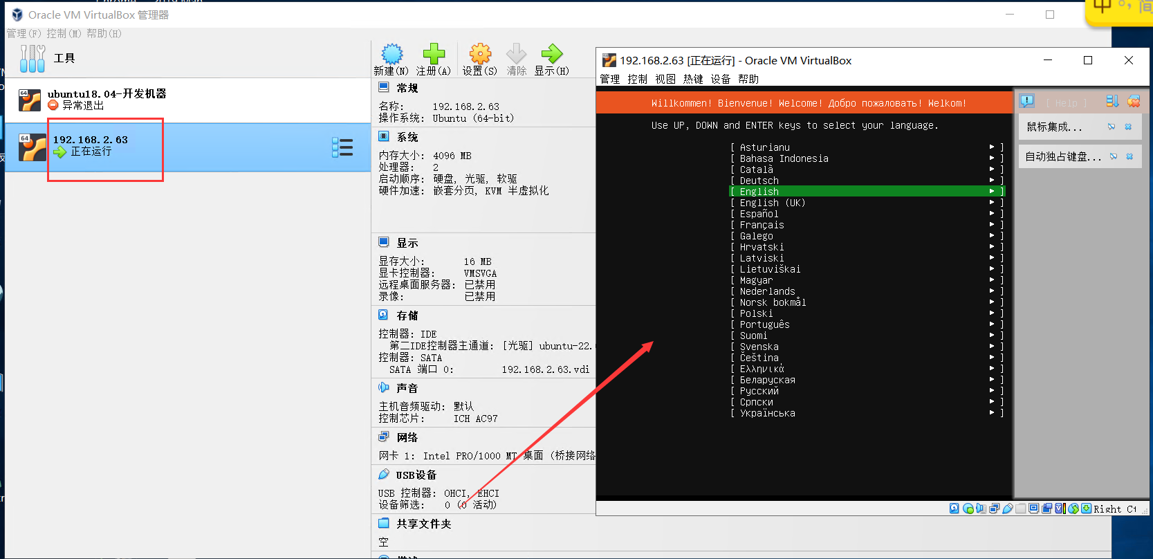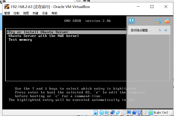 成功运行新创建的虚拟机后(点击启动后显示界面,如果页面静止按下回车)
