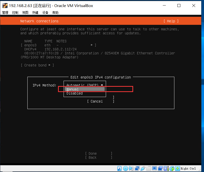 选择IPV4后接着弹窗,选择Manual(手动的意思)