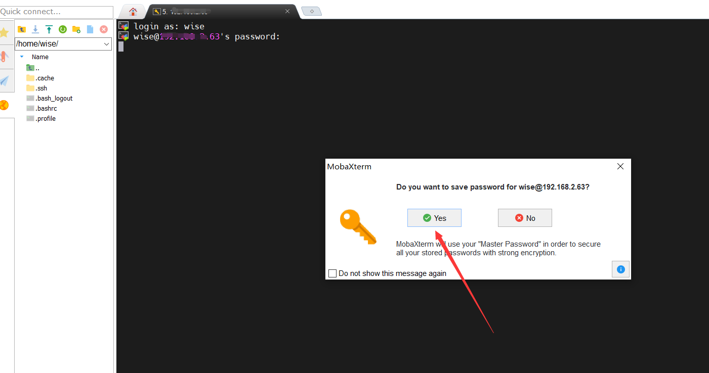 等安装完成后,正常登录成功后初次会出现选择记住密码,选择yes即可