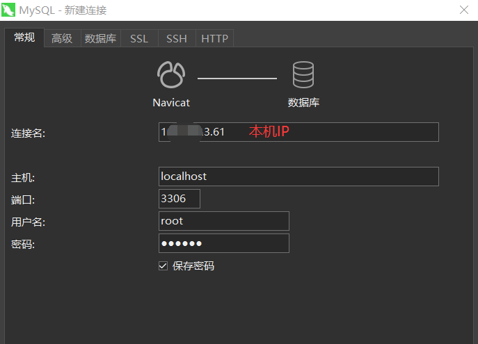 问题:使用本地IP连接本地Mysql数据库连接失败