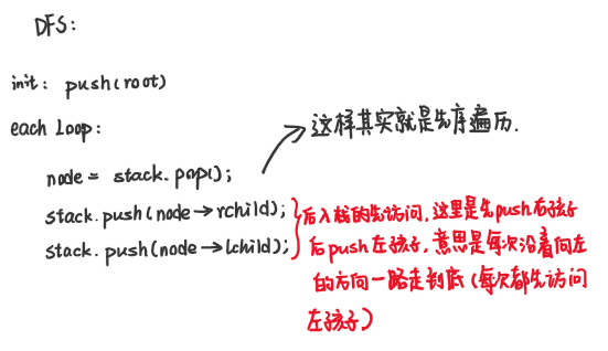 这里如何设计节点的入栈策略是关键,因为执行的时候无非就是依次从stack中取出栈顶元素进行处理,所以stack中节点的入栈顺序就是访问顺序。