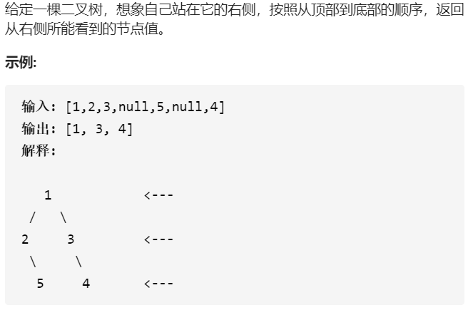 (2)广度优先遍历:按照每一层从左向右的方式进行广度优先遍历。那么每一层访问到的最后一个节点就是该层最右边的节点。