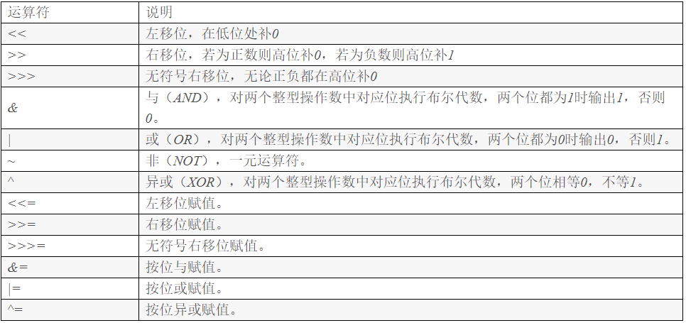 Java的位运算(bitwise operators )直接对整数类型的位进行操作,这些整数类型包括long、int、short、char 和byte,位运算符具体如下表: