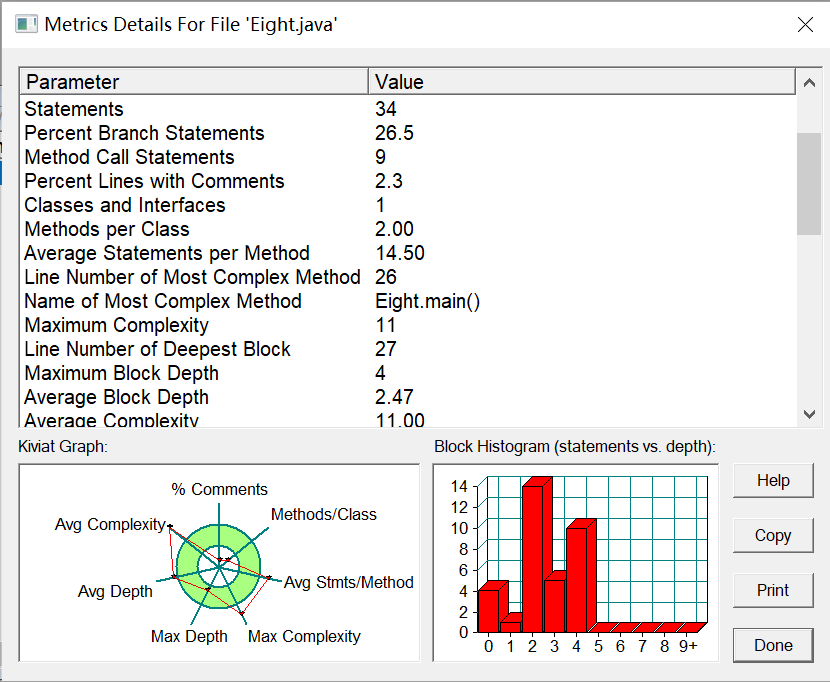 由图可知,我写的题目集1的 7-8代码复杂度为11,复杂度偏高,原因是用了大量的if及if嵌套语句判断三角形的形状,导致复杂度激增。