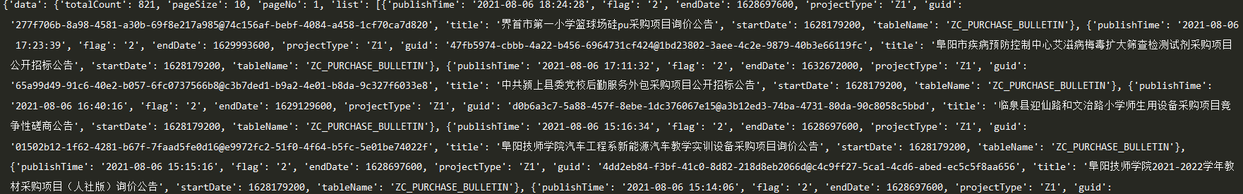 最近使用scrapy爬取某公共资源网站,发现该网站返回的是json数据,我就正常的使用 yield scrapy.FormRequest(url=url,formdata=data,dont_filter=True,callback=self.fy_parse_detail,headers=headers)去请求数据,结果返回的是: