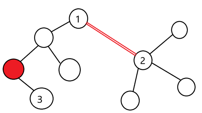 对于两个即将相连的联通块(红色边为新连的边),设红边的权值为 \(w\)。