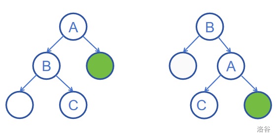 1.将A的左儿子向右上旋转,替代A成为根节点