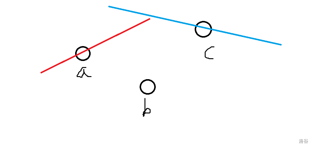 记 \(slope(i,j)\) 表示决策点 \(i,j\) 构成线段的斜率,那么当 \(slope(a,b)\le slope(b,c)\) 时,\(b\) 不可能成为最优决策点。如下图,形如下三角: