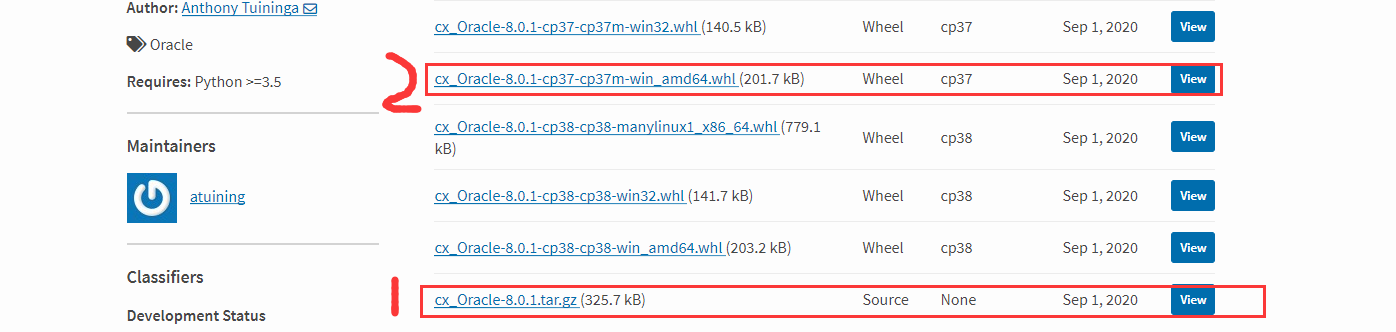cx_Oracle: https://pypi.org/project/cx-Oracle/#files