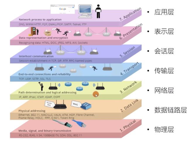 - 网络层:路由和寻址(决定数据在网络的游走路径) 3