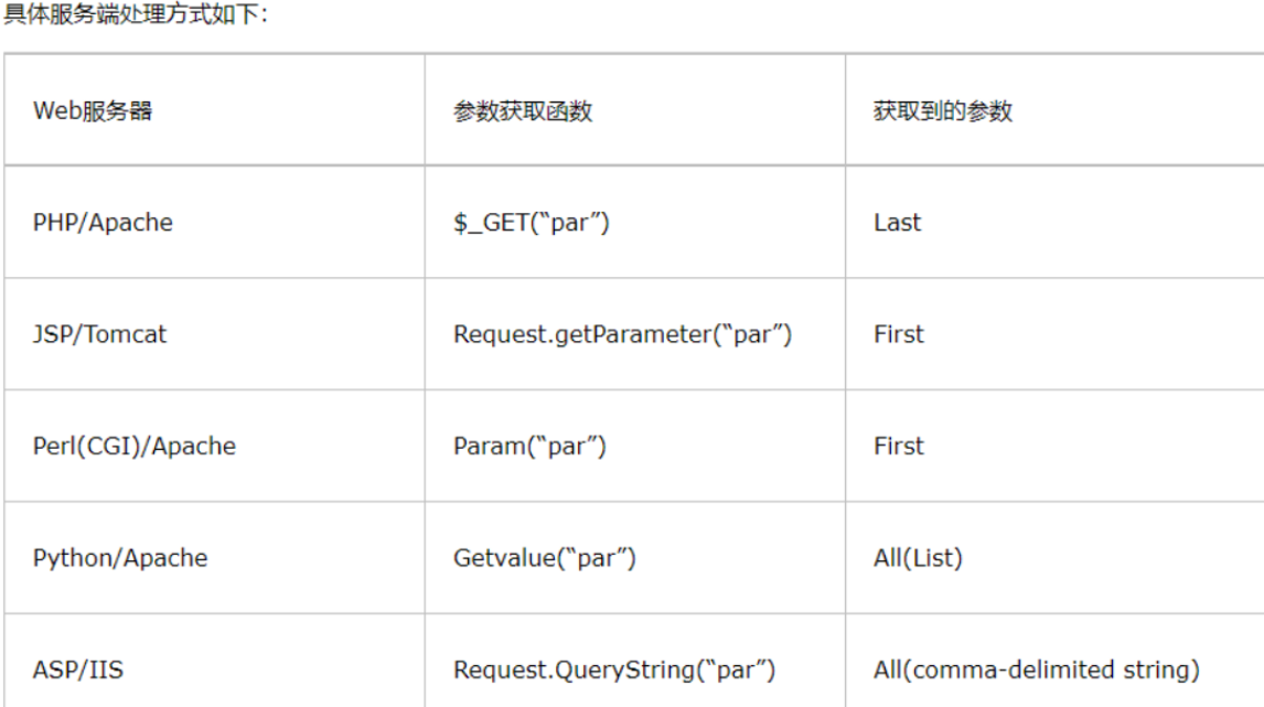 当get方式进行传参时,经过&符号传入多个参数,WAF可能只检测第一个参数的值,然后台却检测最后一个传入的值,此时能够绕过WAF的防护