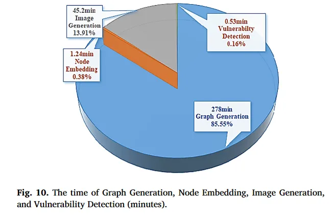 mVulPreter表现出优异的性能。在误差范围内,mVulPreter 接近 VulGAI 性能。具体来说,VulGAI 比 VulCNN 高出约 2 个百分点。在模型的计算性能方面,VulGAI 有 77178 个计算参数,但 VulCNN 是 VulGAI 的 8.77 倍,而 VulCNN 的计算参数676802。在时间表现方面,VulCNN一个周期的平均训练时间和测试时间分别为182 s和16 s。但是,VulGAI 只有 35 秒和 4 秒。