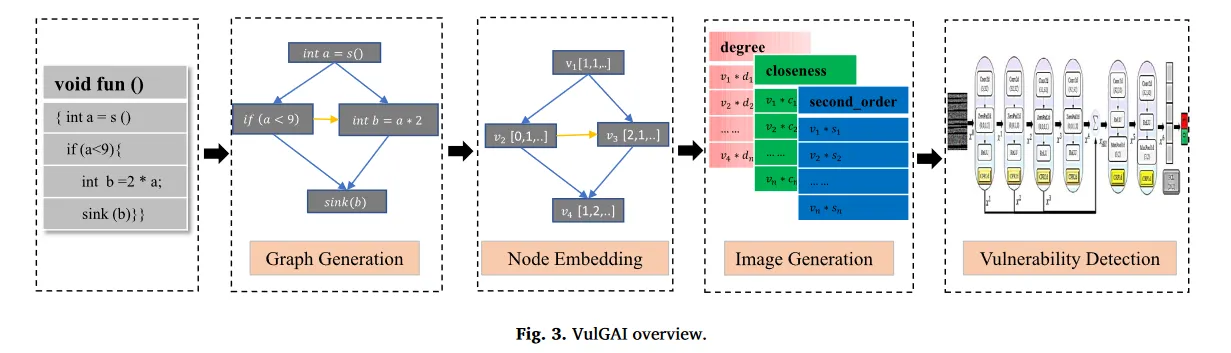 基于VulCNN的启发,我们提出了一种函数级漏洞检测方法。我们分析了卡茨中心性的缺乏,我们利用接近中心性、度中心性和second_order中心性来生成图像,从而区分节点重要性。我们可以从代码行的角度保留程序细节和可视化说明。此外,我们设计了一种更高效的CNN模型,减少了计算开销,提高了检测性能。我们实现了 VulGAI,并在 40657 个函数上评估了六种方法(VulDePecker、SySeVR、Devign、VulCNN、mVulPreter 和 VulGAI)。