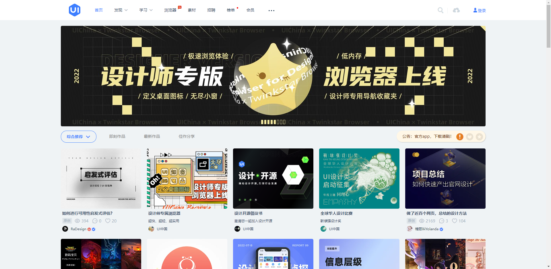 https://www.ui.cn/ UI中国,类似站酷。