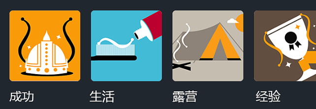 这一块都用了插画的形式,具有统一性,颜色也是黄色为主色,蓝色辅助色,在较深的背景色中形成了对比色。