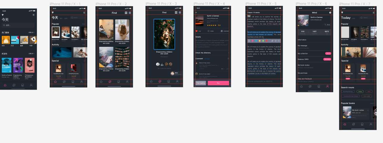 以上是我临摹的读书app,从临摹中获取灵感以及经验,临摹不能照抄,做每一步之前要考虑不同的问题,以及临摹对象这样做的目的,颜色也不能直接吸取,这样也能锻炼自身的色感。