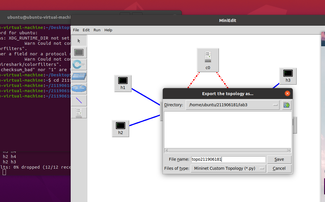 1.导出的拓扑文件存入目录:/home/用户名/学号/lab3/