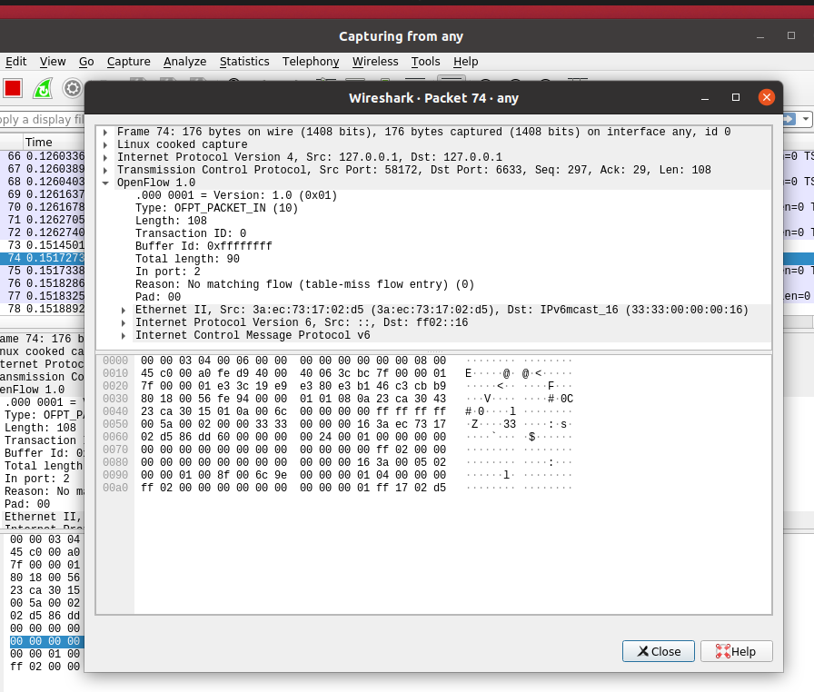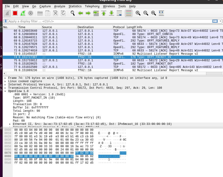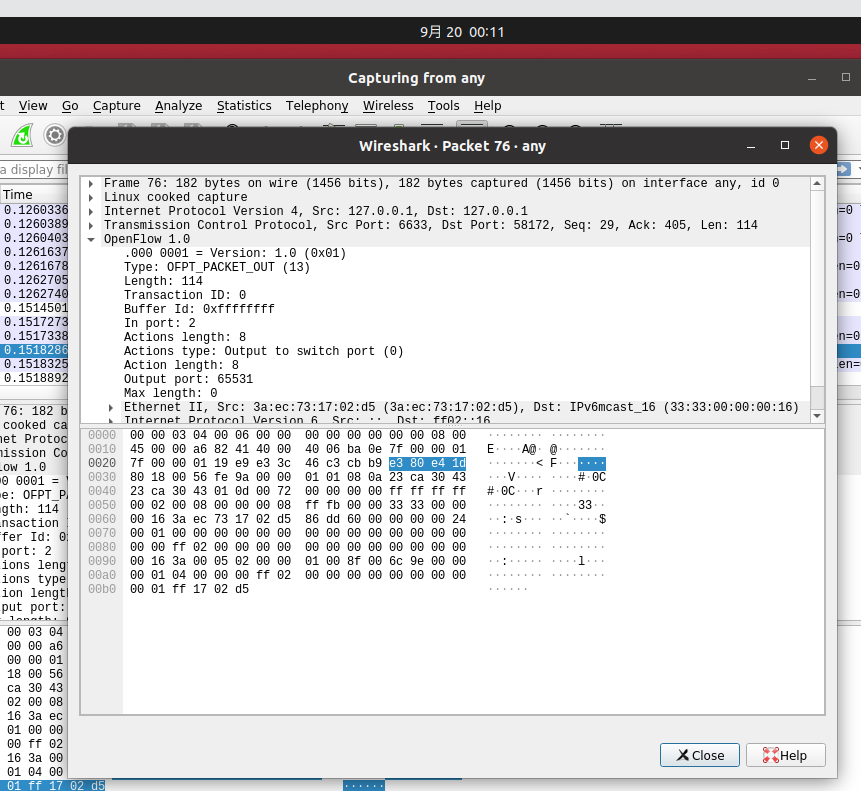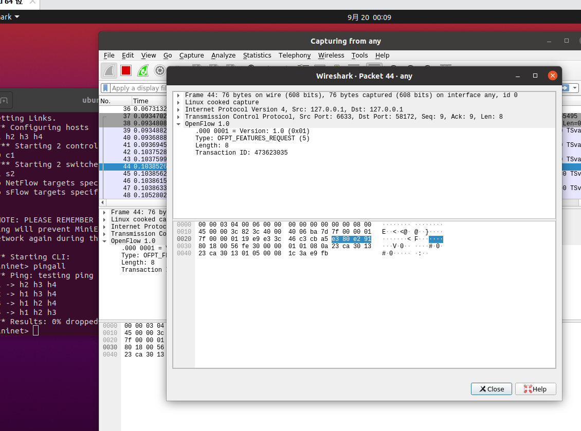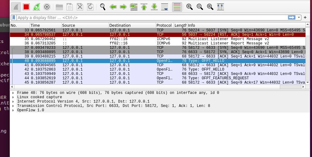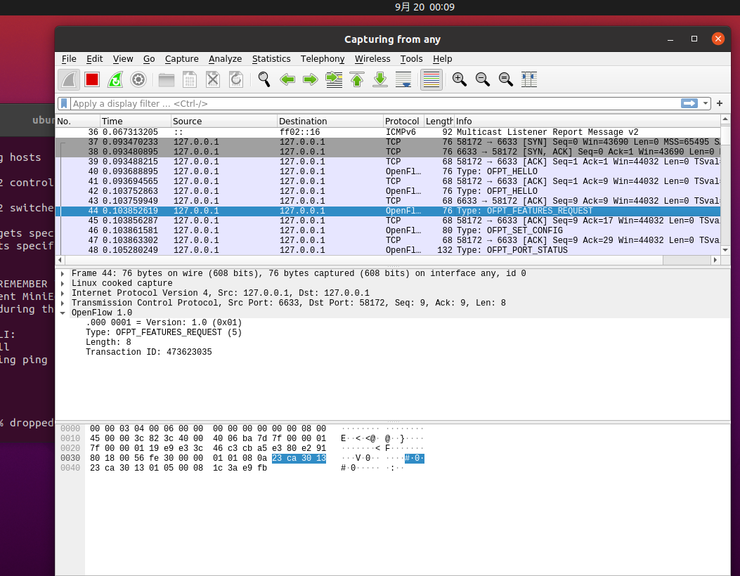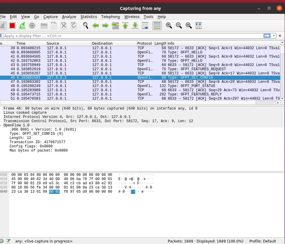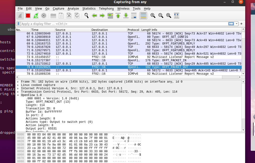 - 能够运用 wireshark 对 OpenFlow 协议数据交互过程进行抓包;