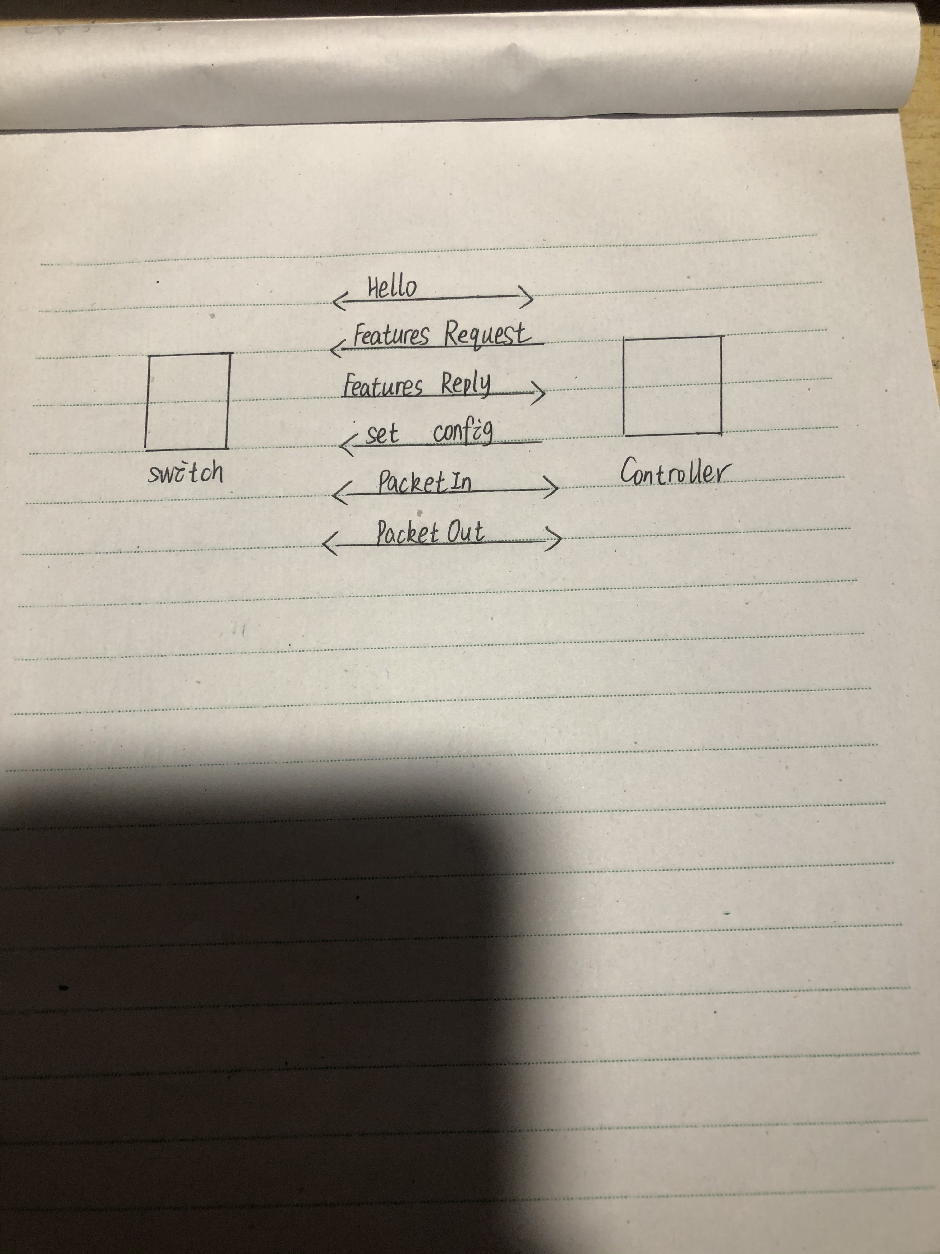 - 查看抓包结果,分析OpenFlow协议中交换机与控制器的消息交互过程,画出相关交互图或流程图。