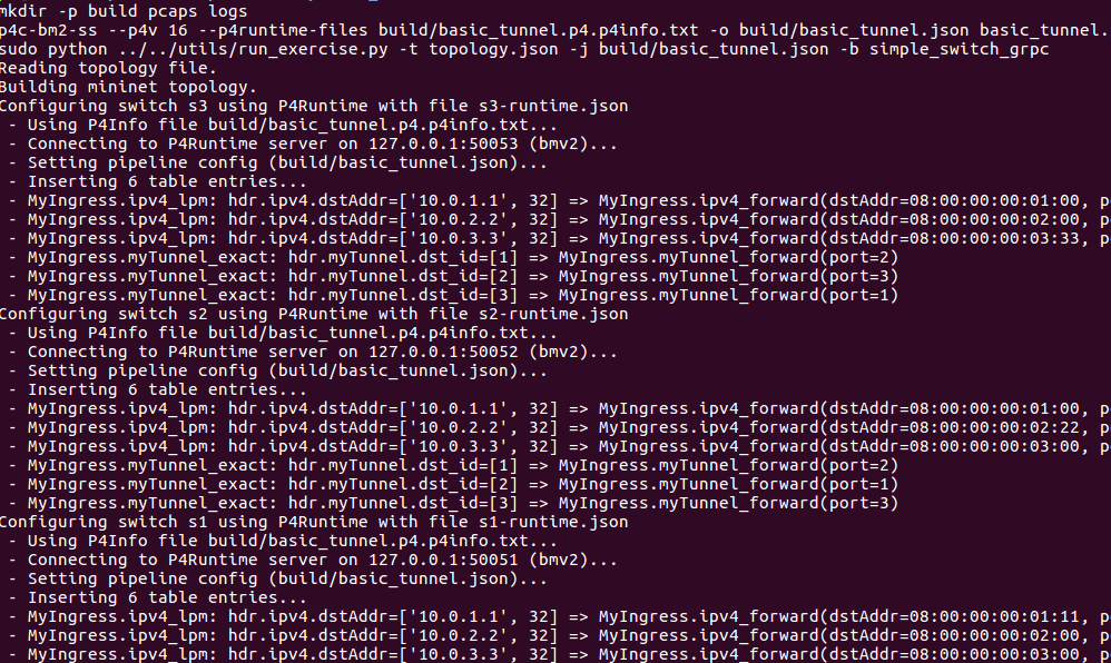 这次的实验好好好好好难呀。。。。首先就是安装p4的问题,电脑存储空间绝啦,其次就是代码的问题,超级大,不是很懂得代码,还要对p4知识有一定的了解,一开始make run一直失败,不知道咋整,后面同学帮我解决了一下这个问题,后面也从一个网址里找到了解决的方法,这次实验一整个懵懵的。