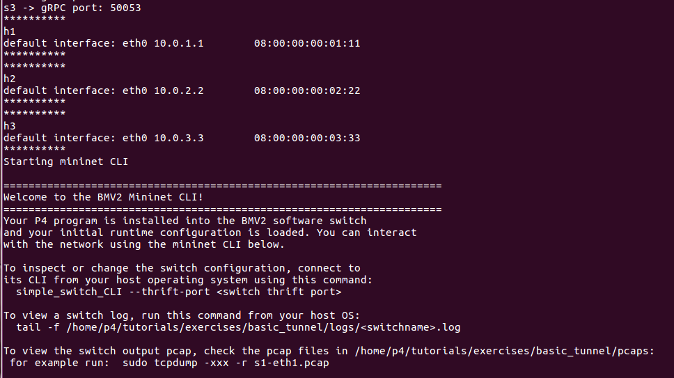 熟悉使用P4实现交换机IPv4的基本转发原理,编写P4程序,在下面的拓扑中实现IPV4 隧道转发。