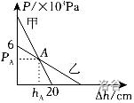 \[p_0=ρ_甲gh_甲=6g/cm^3\cdot 10N/kg\cdot 20cm=12×10^3Pa \]\[p_甲=-0.6\Delta h+12 \]联立求解,得到: