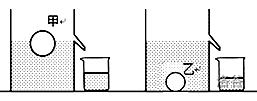 水平桌面上有两个完全相同的溢水杯和烧杯,溢水杯中装满水。将甲、乙两个实心小球分别放入溢水杯中,最终甲漂浮,乙沉底,如图所示。设甲烧杯中水的质量为\(m_甲\),乙烧杯中水的质量为\(m_乙\),现有以下判断: