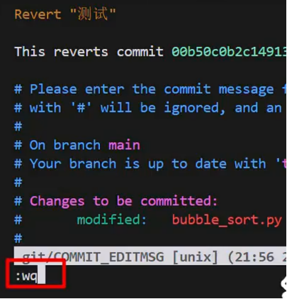 输入命令后需要在下面确定一个,输入:wq 如图如示