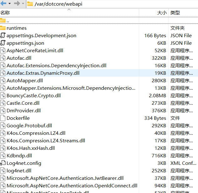 我这里将文件放在/var/dotcore/webapi中