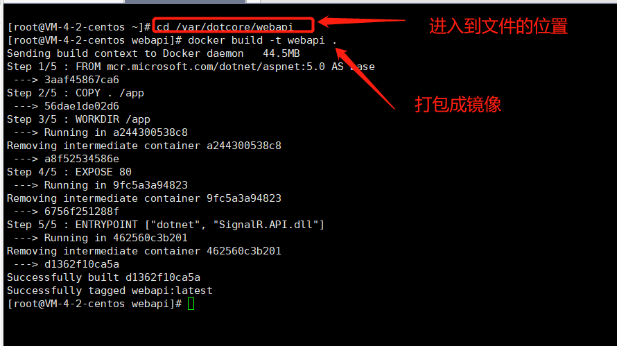 1 #运行环境描述,此处是用的Net5构建镜像 2 FROM mcr.microsoft.com/dotnet/aspnet:5.0 AS base 3 #复制文件到 docker容器中的app文件夹中 4 COPY . /app 5 #设置工作目录为 app 文件夹,要和上面一致哦 6 WORKDIR /app 7 #设置Docker容器对外暴露80端口 8 EXPOSE 80 9 #使用`dotnet WanAdmin.Web.Entry.dll`来运行应用程序 10 ENTRYPOINT ["dotnet", "SignalR.API.dll"]