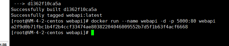 docker run --name webapi -d -p 5000:80 webapi