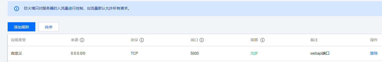 刚开始发布后,外网是无法访问5000端口,内网则可以访问,这个时候需要在服务器上将5000端口对外开放!