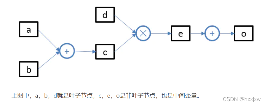 x是叶子张量,因为它是直接创建的,并且没有依赖于其他张量。y和z是非叶子张量,因为它们是通过操作x和y得到的。