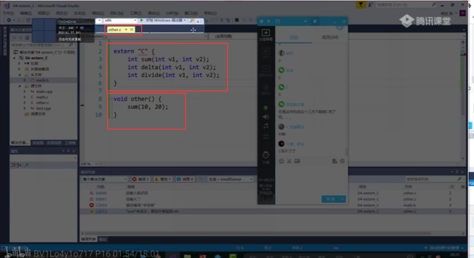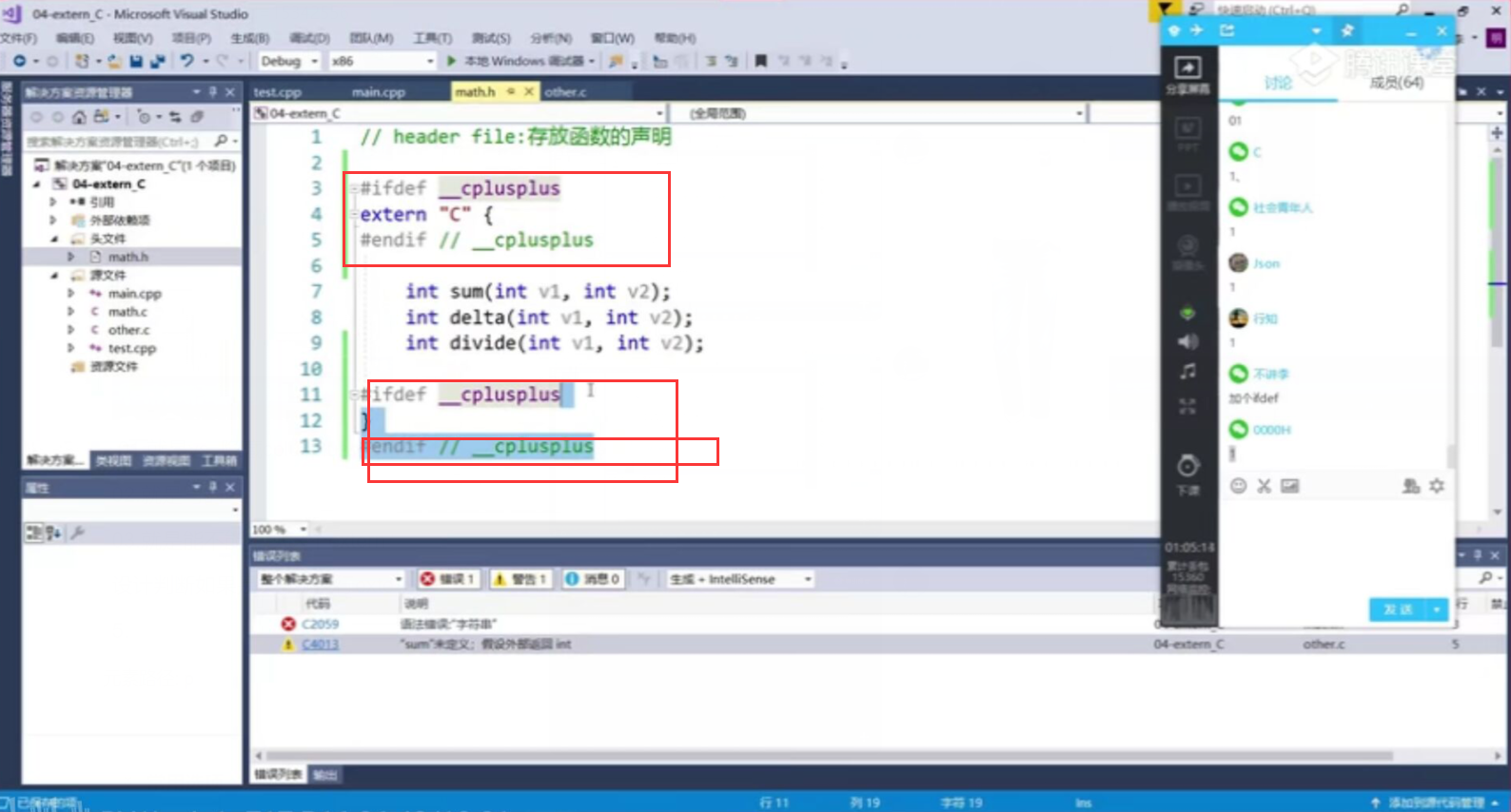 1.◼ 有时也会在编写C语言代码中直接使用extern “C” ,这样就可以直接被C++调用