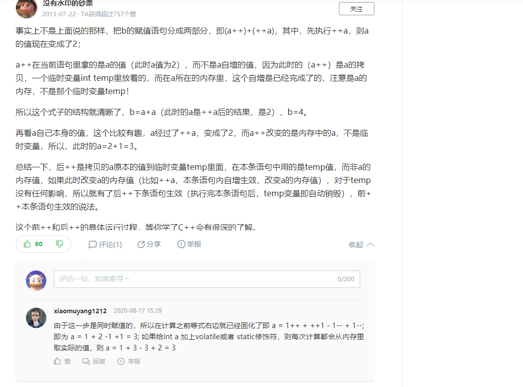 而表达式则是if((a++)==1)和if((++a)==1)这里就有区别了!