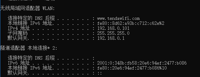 window+R打开“运行”,输入“cmd”,按回车,输入“ipconfig”,记录下相关地址。