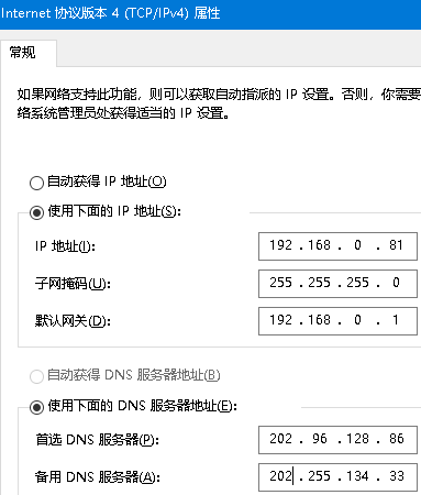 windows设置----网络和interest- WALN属性----interest协议版本(TCP/IPV4)属性,将IP地址后三位改为081(学号后三位),改好相应地址并保存。