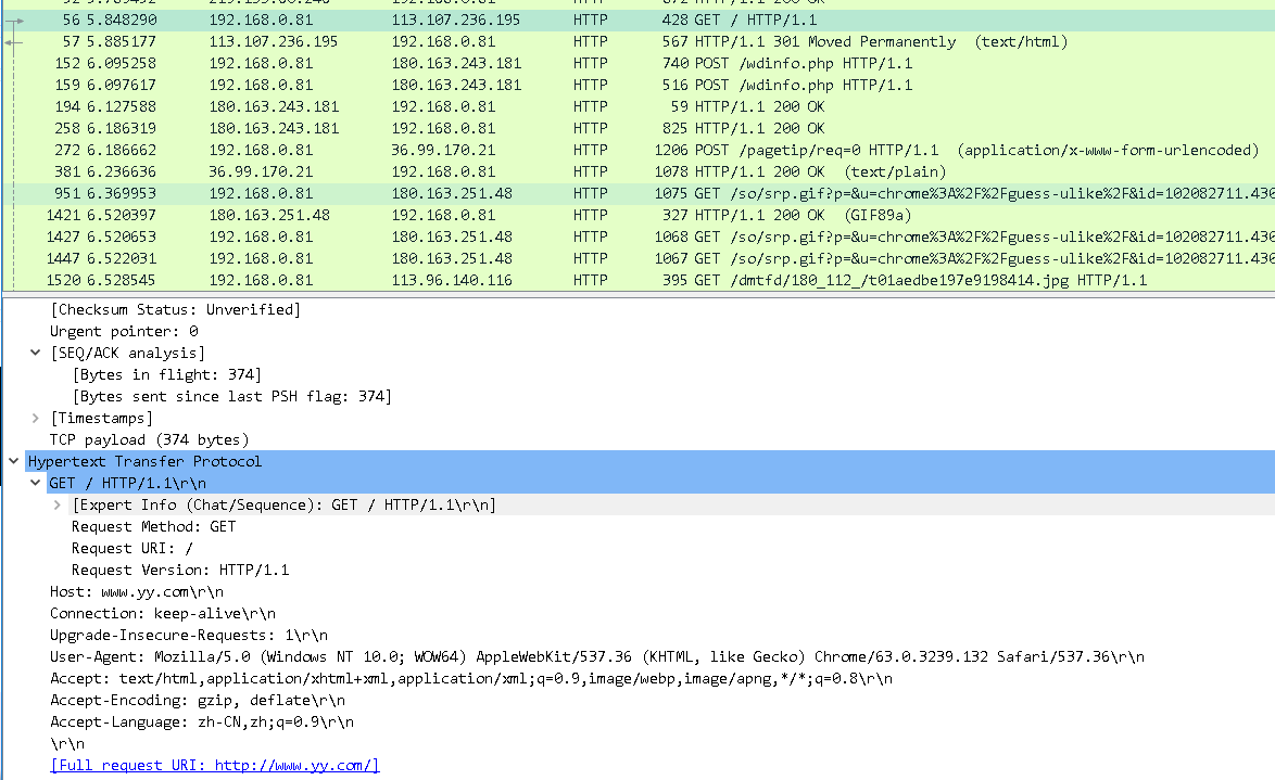 双击“FULL request URI:http://www.yy.com”,系统浏览器自动打开YY直播。