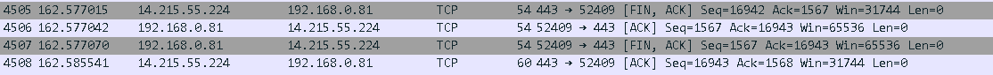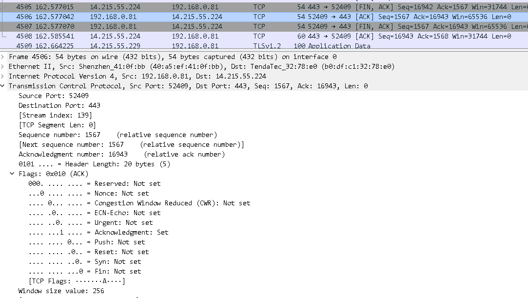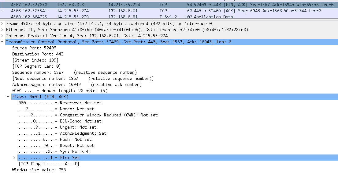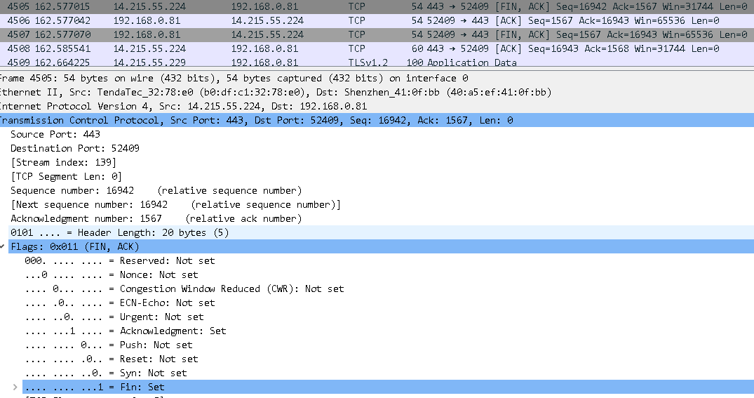 遇到的问题和解决方法:抓包过程TCP释放的过程一时半会搞不清楚,抓了很久也没抓出来,后面通过网上查询相关内容,对TCP释放过程有了基本的了解。