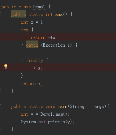 注意,现在还没把值返回给y,而是继续执行finally语句里的语句。等执行完后再把之前保存的值(是2不是x)返回给y。