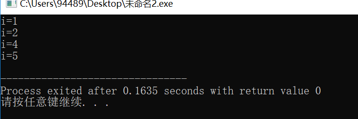 #include <stdio.h> int main() { int i; for(i=1; i<=5;i++) { if (i%3 == 0) continue; printf("i=%d\n",i); } return 0; }